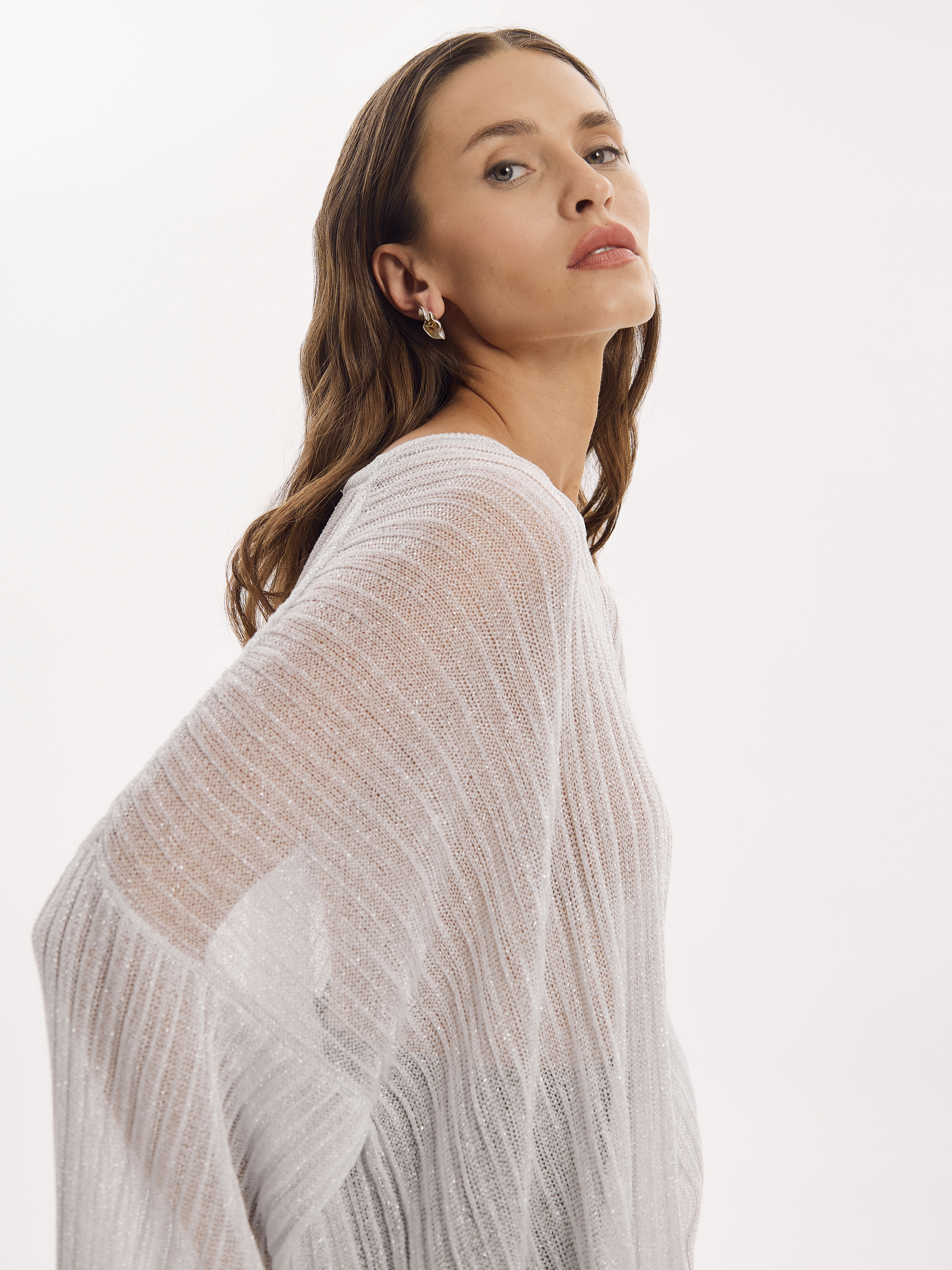 Илюзионный, полупрозрачный джемпер тонкой вязки с добавлением люрекса. Такой незаметный и невесомый, но как меняет образ..